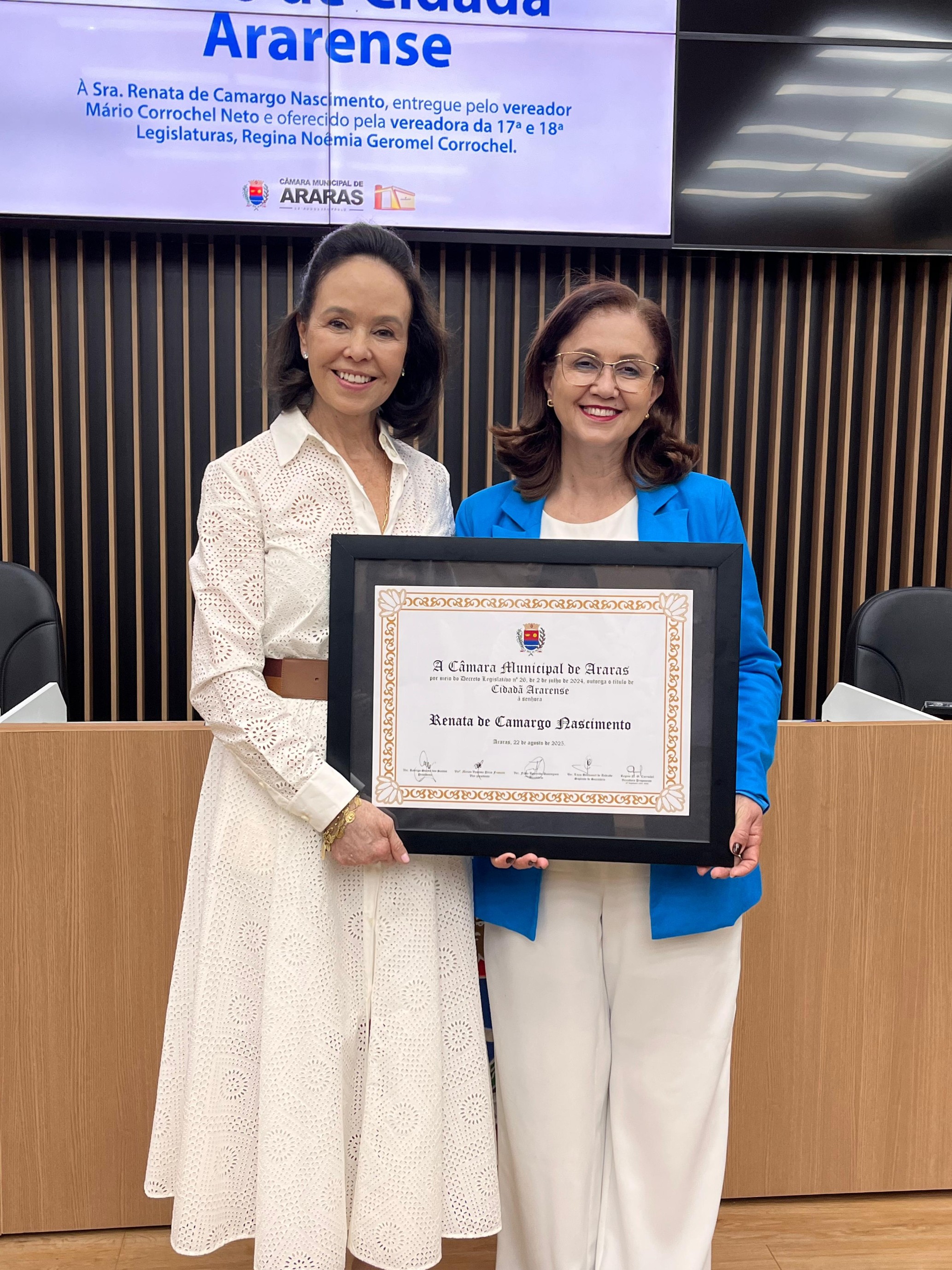 22/08/2025 Sessão Solene de entrega de Título de Cidadã Ararense à Srª. Renata de Camargo