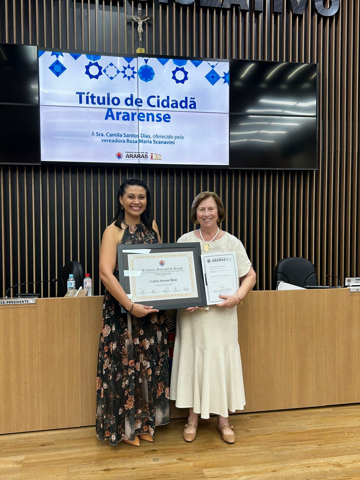 06/11/2025 Sessão Solene de entrega de Título de Cidadã Ararense à Srª. Camila Santos Dias
