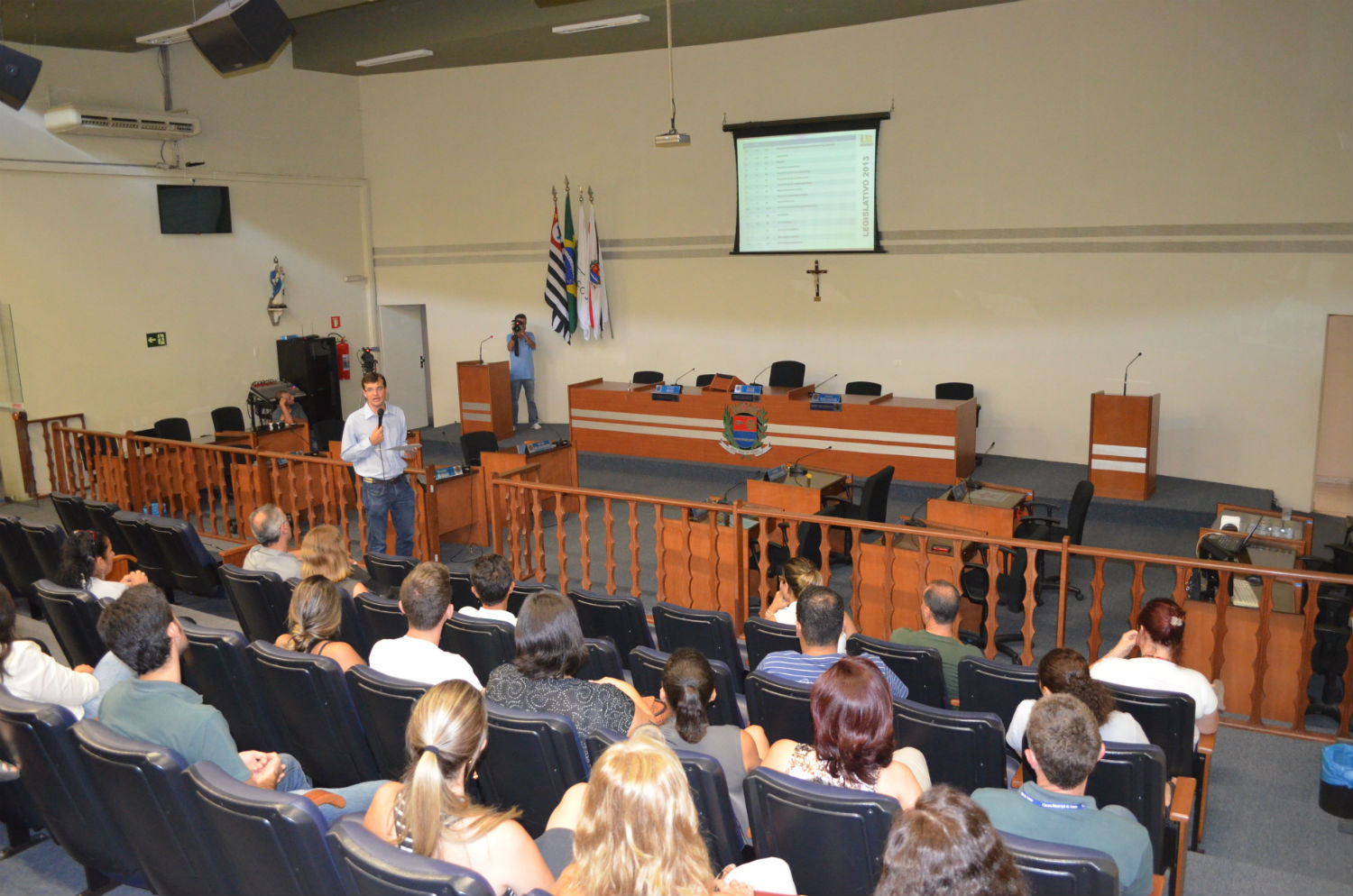 Economia dos recursos públicos, participação popular e recorde de acessos em site foram assuntos tratados em coletiva de imprensa Na tarde de quarta-feira (8) a Câmara Municipal promoveu uma coletiva de imprensa para prestar contas das ações realizadas no ano de 2013. A apresentação foi feita pelo presidente da Casa, vereador Breno Cortella (PT). O vice-presidente, vereador Eder Muller (PROS) também participou do encontro, que contou ainda com a presença dos servidor...