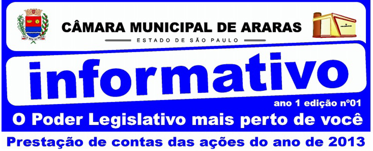 Com objetivo de prestar contas das ações do Poder Legislativo no ano de 2013, a Câmara de Araras lançou neste mês de dezembro seu informativo de fim de ano. O material foi produzido pela Diretoria de Comunicação. O informativo é mais um instrumento que visa fomentar e fortalecer o relacionamento do Poder Legislativo com a sociedade de forma interativa, democrática e transparente. Na publicação o cidadão pode conferir as principais atividades realizadas pela Câmara no ano de 2013....