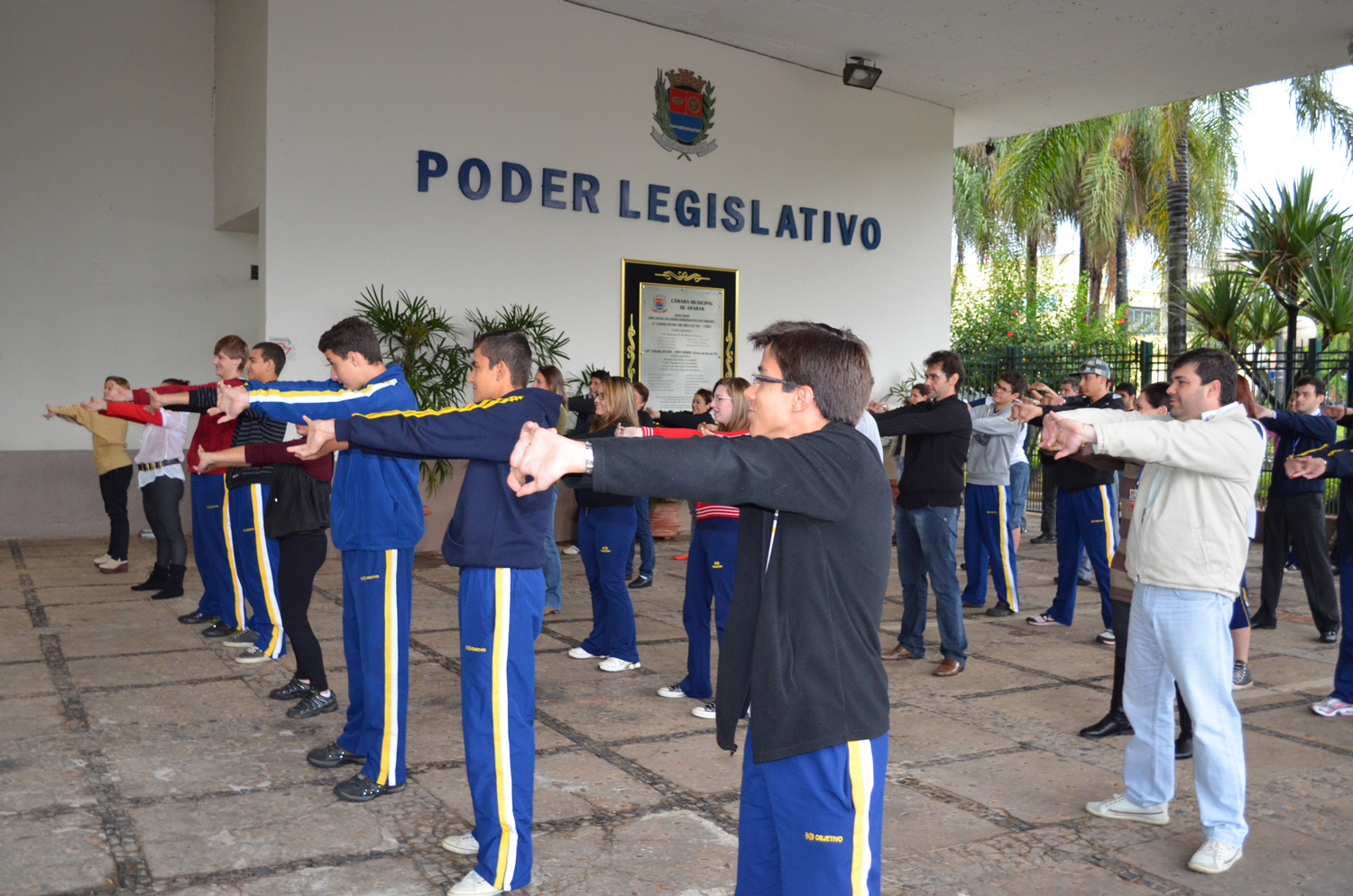 A Câmara Municipal de Araras promoveu nesta manhã de quarta-feira (29) o Dia do Desafio, uma campanha mundial que tem o objetivo de incentivar e mobilizar as pessoas a praticarem atividades físicas. A iniciativa foi do projeto “Câmara Cidadã” e reuniu cerca de 60 pessoas, entre funcionários do Legislativo e estudantes convidados do Colégio Objetivo, que durante 30 minutos praticaram exercícios aróbicos. Os participantes foram orientados pelos estudantes de Educação Física da Uniara...