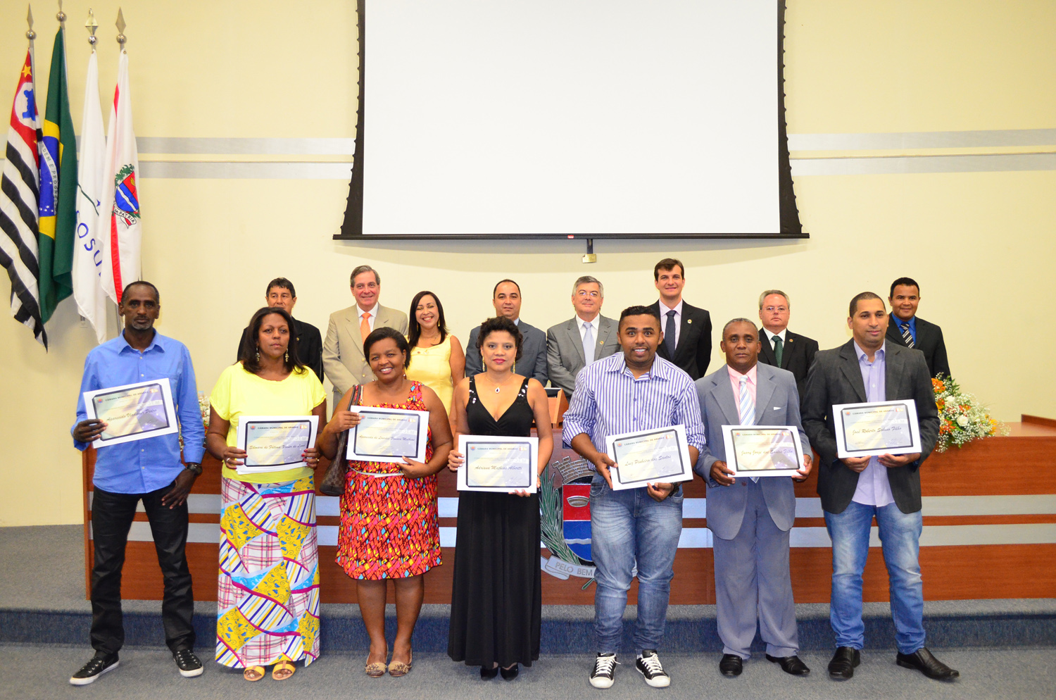 A mesa da solenidade foi composta pelo presidente, vereador Breno Cortella, o vice-prefeito Carlos Jacovetti, os vereadores Erinson Mercatelli e Francisco Nucci Neto. Também participou o ex-vereador Valdemir Gomes – Mami, proponente da solenidade instituída pela resolução nº 8/2010.