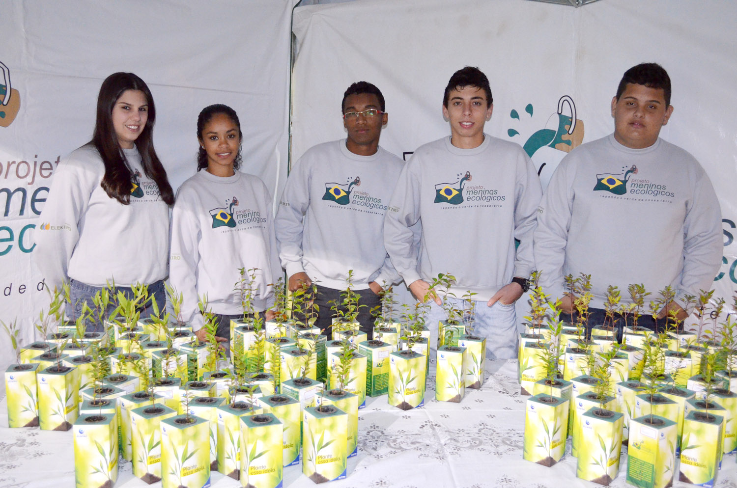 No final da solenidade, os jovens participantes do projeto “Meninos Ecológicos”, realizado pela Aehda (Associação de Educação do Homem do Amanhã) em parceria com a Elektro, distribuíram mudas de árvores nativas e frutíferas para o público.