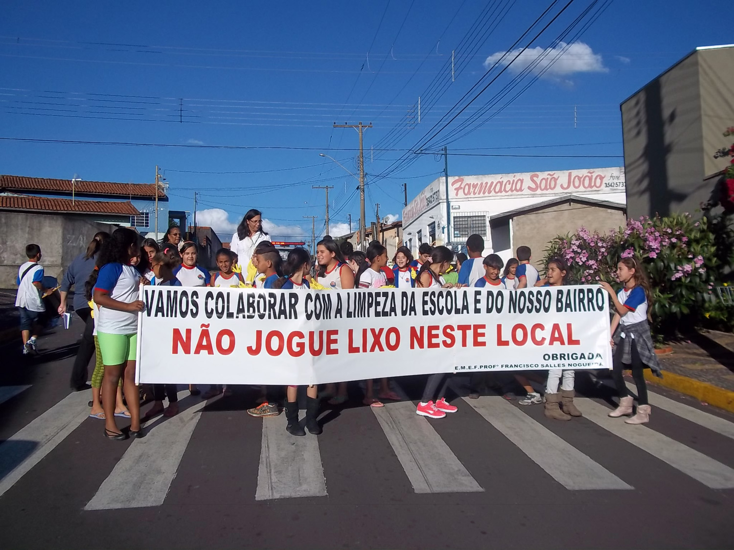 Com os estudantes do 3º, 4ª e 5º anos do ensino fundamental foi realizado outro tipo de trabalho. Os alunos saíram com faixa, sacos para recolher lixo, todos monitorados pelas professoras, com luvas e pás. Alguns alunos, inclusive, saíram com instrumentos musicais, tocando para que os moradores ouvissem e saíssem para ver o que estava acontecendo.