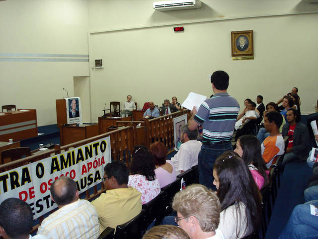 Mais de 70 pessoas participaram do debate público realizado na última sexta-feira, 13 de março, na Câmara Municipal de Araras. O objetivo foi discutir o uso de materiais produzidos com qualquer tipo de asbesto ou amianto, nas construções públicas e privadas, na cidade. Tema que foi apresentado pelo vereador Léo Gurnhak (PT) em um Projeto de Lei, que tramita na Câmara desde 6 de fevereiro de 2009.