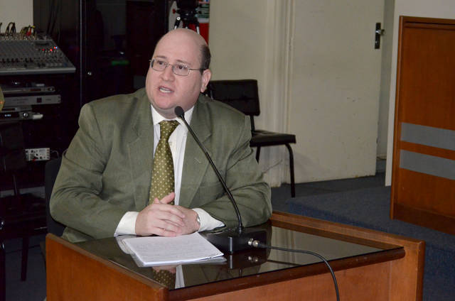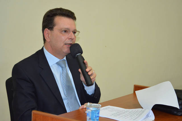 Foto 4 – Terceiro palestrante o delegado titular do município Dr. Sidney Sully Urbach.