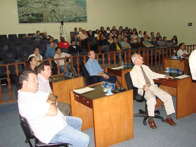 A reunião foi aberta com uma apresentação de informações, exibidas em telão e explanadas pelos funcionários públicos municipais Caio Renato Cândido Narcizo (fiscalização urbana) e Anderson Del Bel (fiscalização tributária), convidados pelo Legislativo a participar da reunião para esclarecer as necessidades da reforma aos servidores.